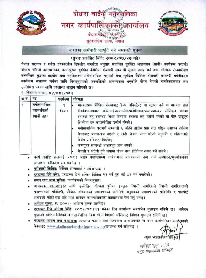 करारमा कर्मचारी पदपूर्ति गर्ने सम्बन्धी सूचना।
