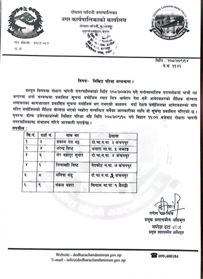 लिखित परिक्षा स्थगित गरिएको बारे।