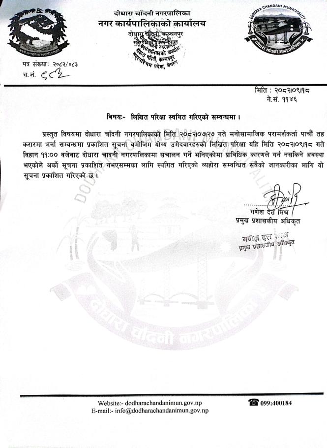 » लिखित परिक्षा स्थगित गरिएको बारे।