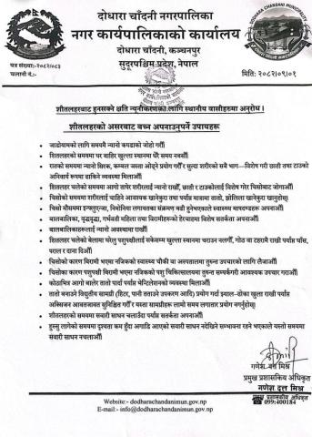 » शीतलहरबाट हुनसक्ने क्षति न्यूनीकरणका लागि स्थानीय वासिहरुमा अनुरोध ।
