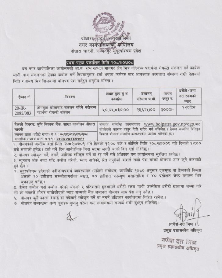 सार्वजनिक खरिद/बोलपत्र सूचना